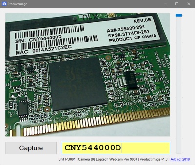 The capture button is disabled as long as the text box for the product identification number is empty. After capturing an image and it is saved in a predefined folder the text box is cleared automatically. In our setup we use a barcode scanner for entering the product identification number.