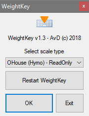 You can download WeightKey as a compressed folder containing all files needed. No need to install the software, just unzip, adapt the configuration file WeightKey.ini and run WeightKey.exe.